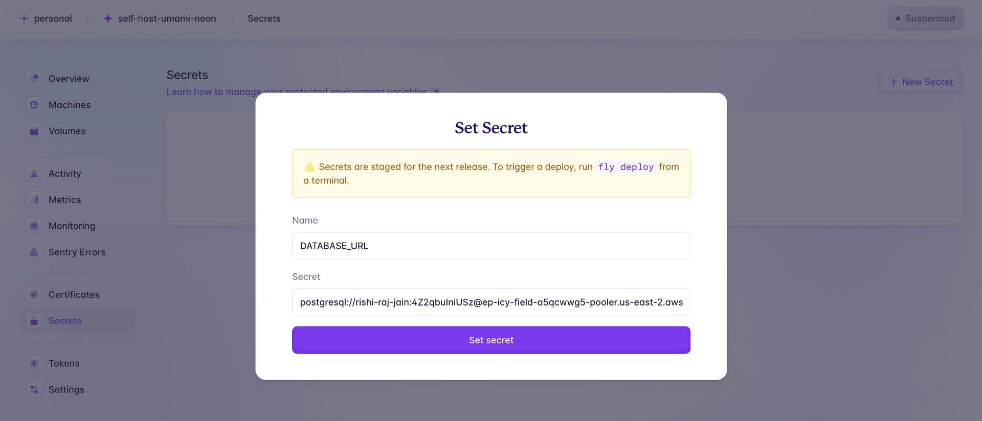 Admin URL: https://fly.io/apps/self-host-umami-neon